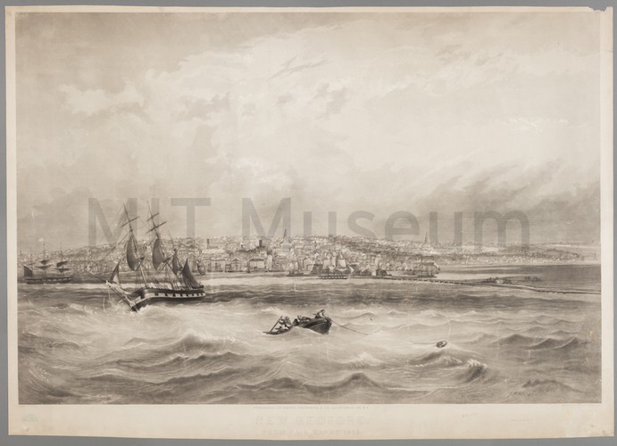 In which the ship Enterprise, Wm. Roach, Pocahontas and Hoque were engaged 10th Dec. 1833. To the merchants, Capts. Officers and Crew engaged in the whale fishing this print is respectfully inscribed by Corns. B. Hulsart who lost an arm onboard the whale ship Superior of New London and was on board of the Enterprise at the time.