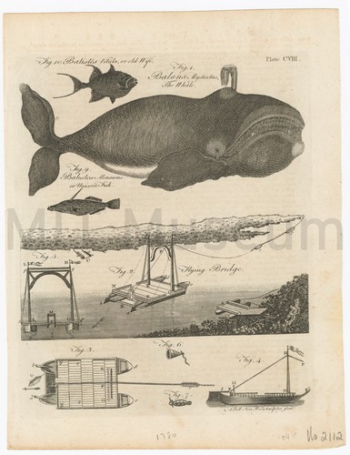 Hand-colored etching depicting a whaling scene among a shoal of sperm whales. 10 whaleboats, four motherships, and seven visible whales.