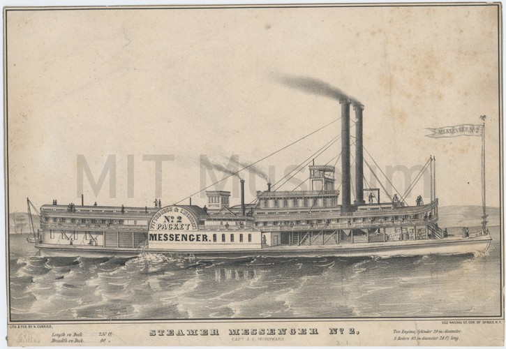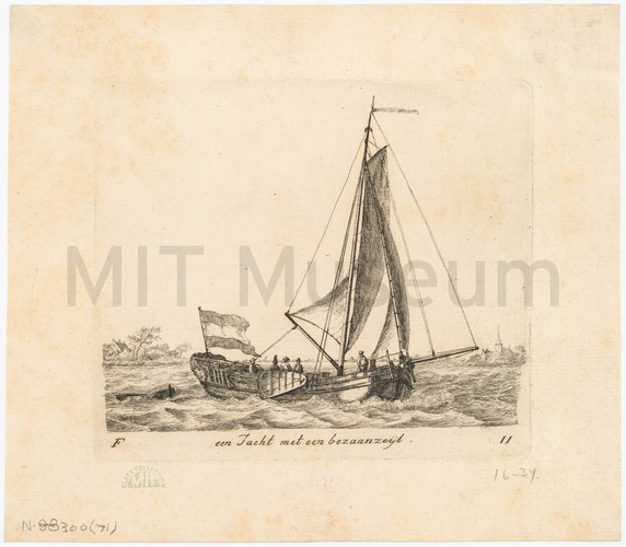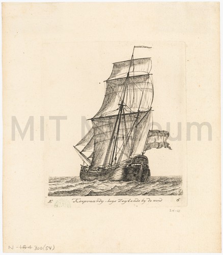 A Whale struck with the harpoon iron diving among the ice, the harpoonier going to chop the ropes off to prevent the long boat being drawn under water or being split against the ice