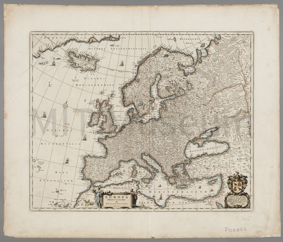 Scene of men climbing from a whaleboat onto a floating patch of ice in order to harpoon a spouting whale. With another whaleboat, as well as a whaleship and a small steamer, in the background.