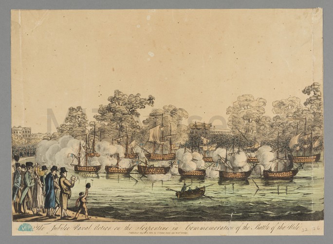 Dated 1813 hand colored aquatint (a method of etching a printing plate so that tones similar to watercolor washes can be reproduced) of a whaling scene, drawn by John Heaviside Clark (1770-1863) and engraved by Matthew Dubourg. This plate entitled: "Boats Approaching A Whale." Great scene with lots of ships and sailors. It is taken from "Foreign Field Sports, Fisheries, Sporting Anecdotes &c.&c." published by Edward Orme, London 1814. This is plate II of 4 whaling prints included in the book and the hand coloring is original to the 1814 publication. Print appears mint, frame has a few minor scratches. Not examined out of the frame.