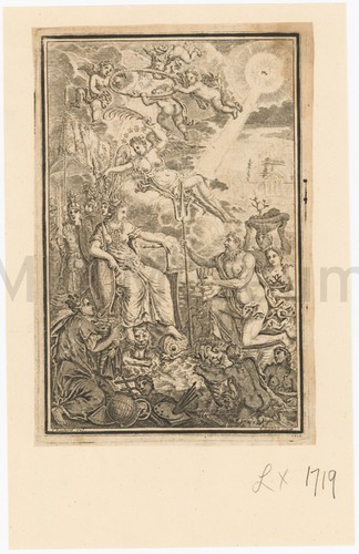 Perspective view of a vessel whose bow points towards the viewer's right in a long canal, with many other vessels behind her in the canal. Shirts are hanging to dry on her rigging and her figurehead takes the form of a classically dressed woman with one hand outstretched. There are onlookers on both shores of the canal, and the title and production information appear in the lower margin.