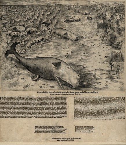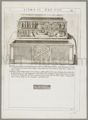 Engraving depicting various figures and objects from Indian mythology. Labeled "No.1" through "No. 9". "No.2" features a four-armed figure in a crown emerging from the mouth of a fish standing on its tail; the figure holds in its hands a book, a ring or torus, a sword, and a cowrie shell. No.8 and No. 9 feature sea monster chimeras. No.3-5 feature mermaids and mermen. Below the image is the title "DAGON."