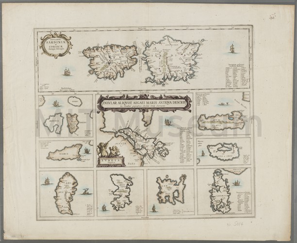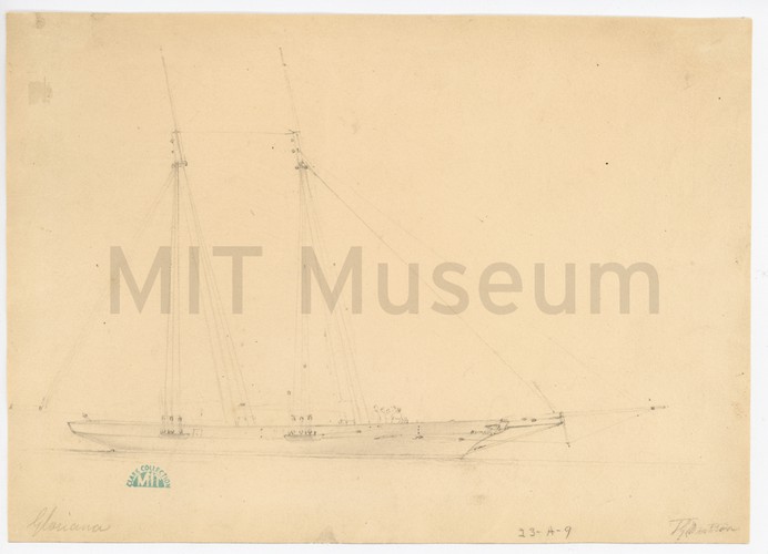 Black and white engraving featuring various darts and spears for fishing. The bottom half of the diagram features a lengthwise crosscut of a kayak.