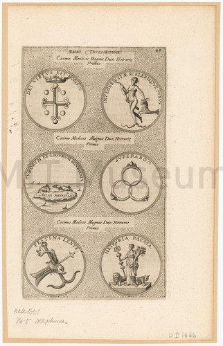 Page from Volume 2 of the book "Thesaurus Graecarum antiquitatum" by Jacobo Gronovio, with Latin text discussing Dido, and an engraving depicting six Greek coins. One of the coins has a whale swimming alongside a galley; this is pointed out by a pencilled in arrow.