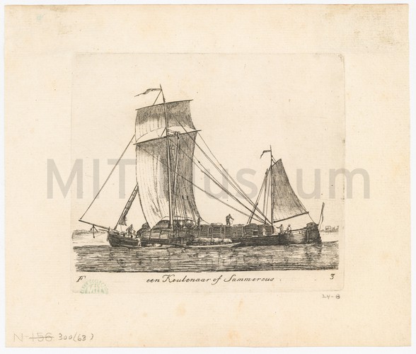 "Versehevde Soorten [faded]n HOLLANDSE Vaarburgen Geteekenten Gesneeden door G. Groenewegen 2de Boekje"; "Plusieurs Sortes de Batimens Hollandoise dessin̩ et grav̩ par G. Groenewegen 2de Cahier 1787". In English, this translates to "Various types of Dutch boats drawn and engraved by G. Groenewegen, second collection, 1787."