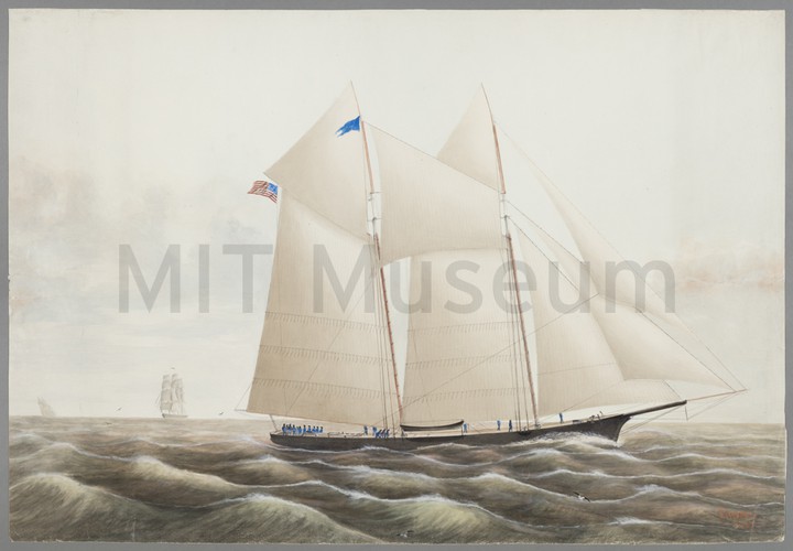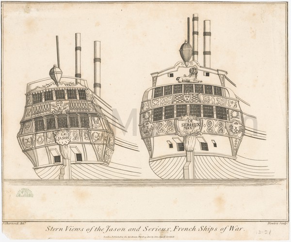 Uncolored engraving of a nude, bearded man seated on some rocks by the sea, with a fish's tail in one hand and a vase pouring water in the other. At top right, labeled "PL. XXV. B." With some tools leaning against the rocks at right, and a human skull on a ledge above the man's head.