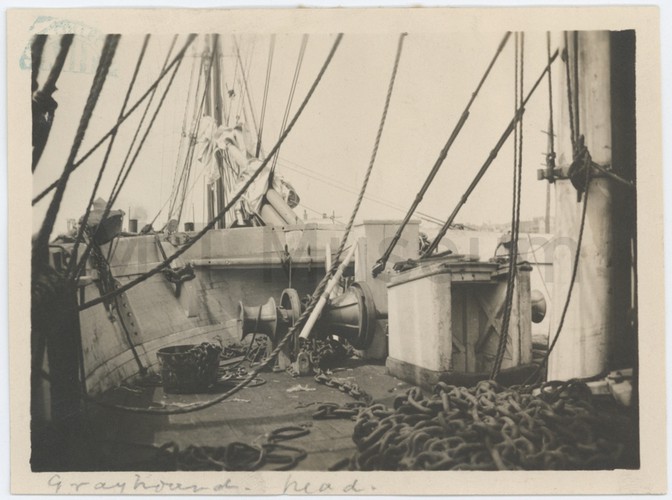 A copperplate engraving from the book titled, 'Plan de plusieurs b̢timens de mer avec leurs proportions dedi̩ �� Son Altesse Serenissime Monseigneur Louis Auguste de Bourbon' (Marseille: c. 1720) by the French Captain Henri Sbonski de Passebon. The book was a collection of naval architecture prints. This print is of a Dutch fluyt ship at a port, which was the sailing ship in general service during the 16th century and made Holland a great maritime power in the 17th century. The fluyt was characterized by its long, relatively narrow hull that was designed to carry as much cargo as possible. It was three-masted and had a large hold beneath its single deck. The main and fore masts carried two or more square sails and the third mast a lateen sail.