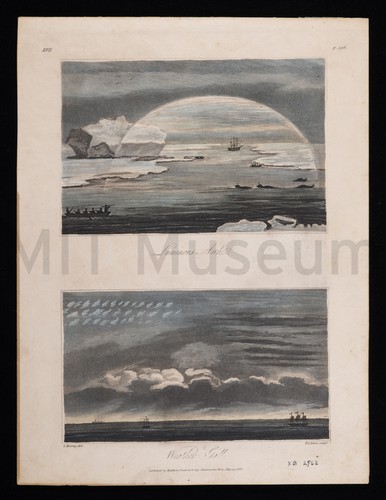 Colored print reproducting a painting of a three-masted frigate with a single tier of guns. Side view; she flies the United States flag on the stern, at right. Another ship is visible, also in side view, at left in the background. Title is printed in cursive writing in the lower margin.