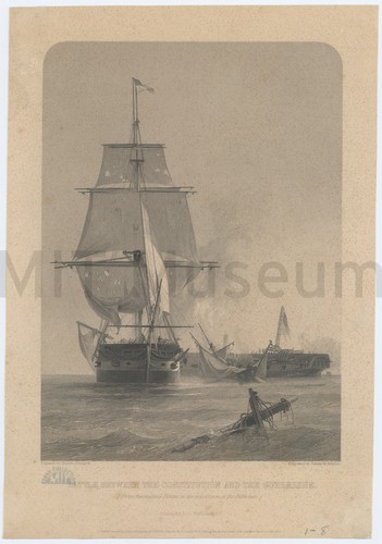 A copperplate engraving from the book titled, 'Plan de plusieurs b̢timens de mer avec leurs proportions dedi̩ �� Son Altesse Serenissime Monseigneur Louis Auguste de Bourbon' (Marseille: c. 1720) by the French Captain Henri Sbonski de Passebon. The book was a collection of naval architecture prints. The title at the bottom of the print indicates that the ship is a galleass warship viewed from its port side and with men standing on the deck. This sail and oar propelled of warship evolved from the galley ship, which was propelled exclusively by oars, and was primarily used in the Mediterranean Sea. The galleass was larger than a galley and the added sails functioned to reduce the burden of the crew. It was a popular ship design from the 1400s to the mid-1600s, serving as a transition vessel from oar to sail power. Guns were placed between the row ports as seen in the print.