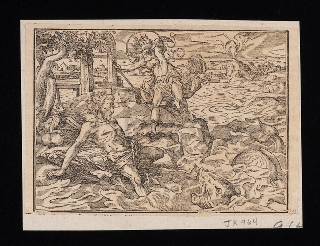Lithograph depicting the Royal Barge at Devonport, with spectators on boats in the foreground waving their hats and flags. Production information, title, and a royal crest in the lower margin. Marked as a proof, at bottom left.