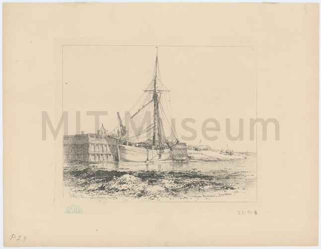 Photograph of the fireplace in Arrowhead, the 18th-century farmhouse in Pittsfield, Massachusetts of Herman Melville, author of Moby Dick. The words "I and My Chimney" are inscribed on the stone facing of the fireplace. The story ��I and My Chimney,�� published in Putnam��s Monthly Magazine in 1856, contains one of the most complete descriptions there is of Arrowhead during the Melville occupancy. The story is a fictitious account of the efforts of a wife to remodel an ancient farm house by replacing the central chimney with a grand hallway. Melville used Arrowhead as a model for the house, and the story is filled with accurate descriptions.