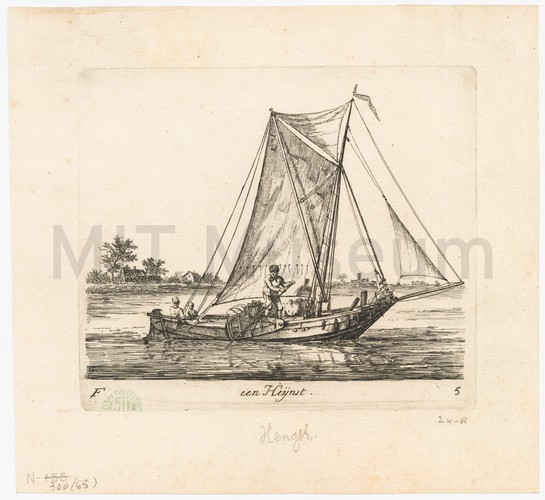 Plate 11 from the series 'Twenty-two prints of several of the capital ships of his Majesties Royal Navy with variety of other sea pieces.' A view of two royal naval ships and an admiralty yacht with their sails lowered and anchor raised. The ship in the right foreground fires cannons. Men row in small boats around the larger ships. Underneath the image is the title and production detail, "T. Baston Delin / E. Kirkall Sculp."