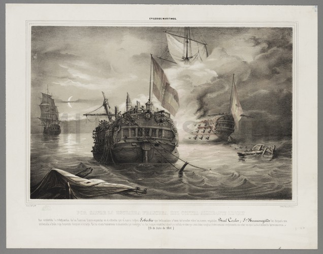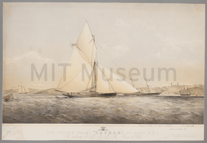 Etching depicting a three-quarters stern view of a hoeker at sea, her sail full of wind. At far left is a buoy with four small flags on a pole extending up from it, probably connected to the longline ("beug") mentioned in the title. With title, "D", and "8" printed in lower margin. The letter refers to the number of the volume of Groenewegen's works, and the number to its position in that volume.