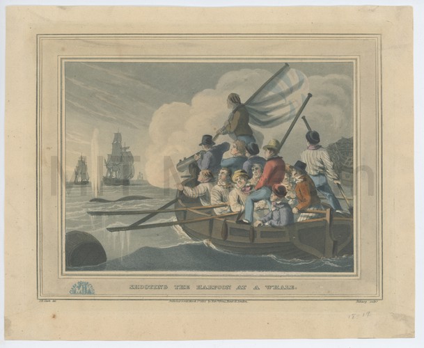 Hand-colored image depicting a bottlenose whale, side view. Titled below, "Hyperoodon bidens." On right, at edge of plate, "Plate XLVII". To accompany a Philos. Trans. Royal Soc. article about whale anatomy.