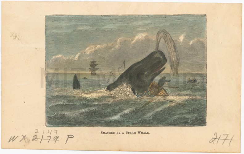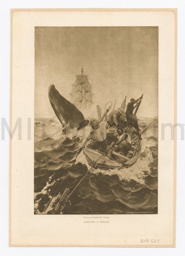 A photo-processed reproduction print after a painting by Samuel Walters. The steamship sails towards the left off a shore with a lighthouse. She was built for the Inman line and made her maiden voyage on April 29, 1875, making stops at Liverpool, Queenstown, and then New York. She crossed the Atlantic Ocean in a record-breaking 7 days, 18 hours, and 2 minutes, which was 5 hours faster than the previous record.