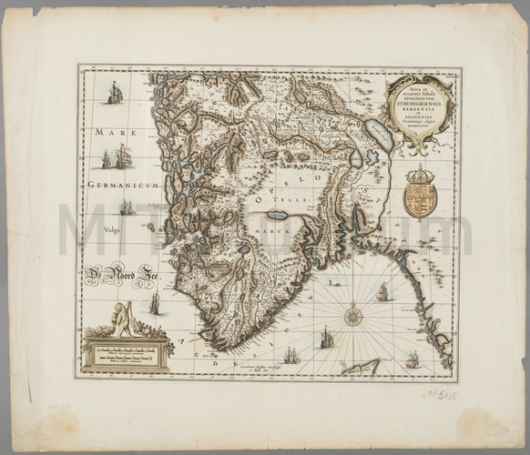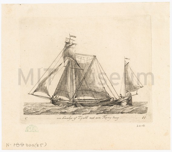 Black and white engraving of the whale spitting Jonas up onto land in a harbor area with several small sailboats, and some towns on cliffs, in the background. On the bottom left corner, the maker name is given: "Ioan Sadler scalps et excud" (Jan Sadeler, engraver and publisher). On the bottom right corner, the text has been scratched out; based on other prints of the same engraving, one can ascertain that this text originally read "Theodor. B Amst figurmat".Below the image there are two columns of Latin text. In the first column: