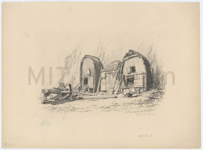 Uncolored engraving after the Titian painting "The Rape of Europa", rendered in reverse, with a paragraph of text in French below it describing the painting and the myth upon which it is based.