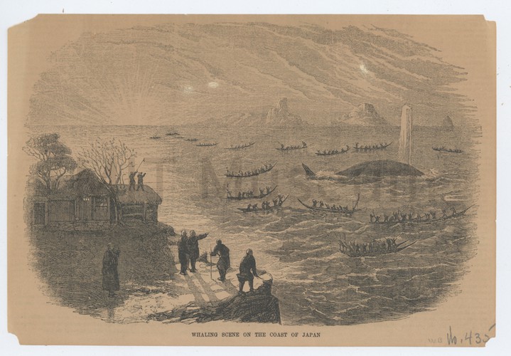 Hand-colored lithograph by A. Mayer depicting a whaleboat crew from the French Navy brig le Mercure rescuing survivors of the capsized Somers, off Vera Cruz, Mexico. Somers is visible in the right background, on her beam ends.