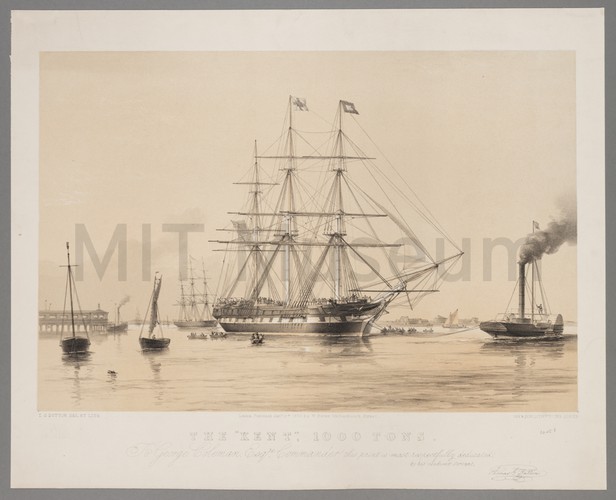 View of a lugger pulled up on the beach, with her sails and what appear to be nets hung out to dry. A man works on her rigging while kneeling on deck, his back to the viewer. The sea and a fisherman are visible at left, and more boats in the background at right. Artist name, date, and title at bottom of the design; publication information printed in lower margin. Drawn January 1830; published 1 August 1830.