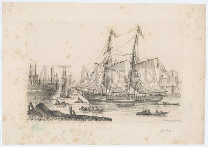 Uncolored engraving depicting various mammals, including elephants, a rhinocerous, a giraffe, a porpoise, an orca, and two whales. Each animal is labeled with a number from 1-25. Under the image are printed the attributions. At the top of the page is printed "N.II.14 MAMMALIA PLATE LXXIII".