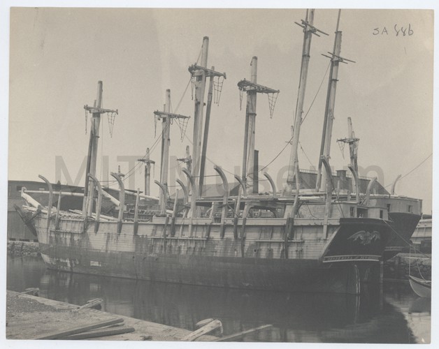 A busy port full with East Indiamen and other merchant shipping vessels: R. V. Y. 'Fanny,' 'Celestial,' 'Mor,' 'Blenheim,' 'Fort William,' 'Marlborough,' and 'Charlotte.' The names of the vessels are inscribed underneath the image. The print is dedicated to Robert Methven, Esq.