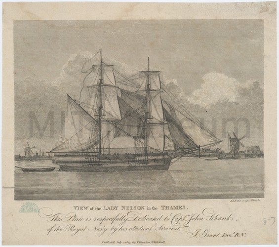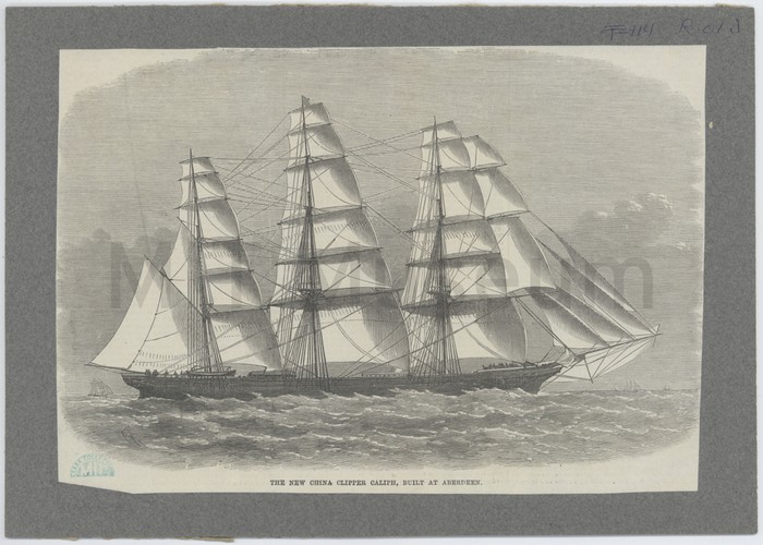 A view of a shore in Milford Haven with the 'Leviathan,' or as it was more commonly known, SS 'Great Eastern,' in the distance. Designed by Isambard Kingdom Brunel and built by J. Scott Russell at Milwall under the Eastern Steam Navigation Company, the auxiliary steamship was to be the largest steamship to be built in the mid-1800s. She was to be capable of carrying 4,000 passengers and navigate a non-stop trip to Australia. The ship was so large that launching the ship broadside took several attempts. The size of the ship required multiple propulsion systems: a single screw and paddle wheels, with auxiliary sail power.