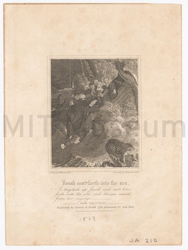 Photograph of a model yacht placed atop a wooden box, in side view. A ruler is attached to the box, giving scale. In the background, at left, are a closed door and a doorframe; light is visible round the edges of the door. A fern plant is visible at bottom left, behind the model. At top right, half cut off by a wall or doorframe, is a hanging gaslamp, not lit; below it, similarly cut off, is what appears to be a birdcage.