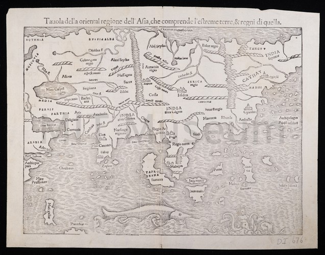 Black and white engraving of the unicorn-fish. Title in Latin, French, German, and English.