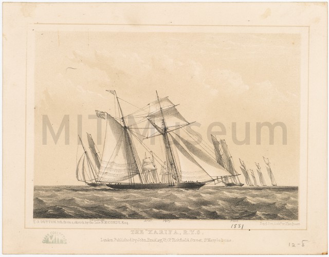 Photograph of a William Edward Norton painting showing a three-quarters bow view of the ship Winona in a gale at sea. Artist signature at lower left. Stamped (impressed) "ORDING" at lower right corner. Ink stamp on verso giving photographer attribution.