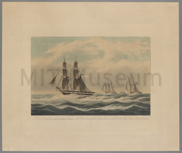 Engraving with an elaborate border in two frames. Top, a bird's eye view of whaling with the text "Oceano Settentrionale" and "Pesca della Balena". Below, a bird's eye view of a narwhal hunt with highly stylized narwhals, with the text "Pesca del pesce sega" and "Mare di Spitzberga".