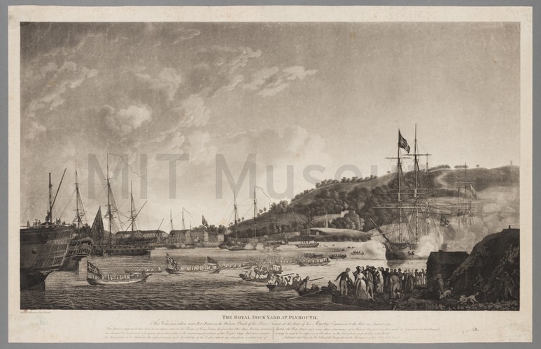 Plate CXVIII (118) from the second edition monograph on the steam engine and steam navigation by Thomas Tredgold and W. S. B. Woolhouse. The first edition, published in 1838, consisted of two volumes and titled, 'The Steam Engine: Its Invention and Progressive Improvement, an Investigation of its Principles, and its Application to Navigation, Manufactures, and Railways.' The second volume consisted of only plates. In the later edition, published 1845, only volume 2 was published under the title: ;Illustrations of Steam Machinery and Steam Naval Architecture.' The uncolored print depicts the port-side view of the US mail steamboat 'Neptune.' She flies various identifying flags on her masts that include a flag with the sea god Neptune with his trident on a seahorse-drawn chariot.