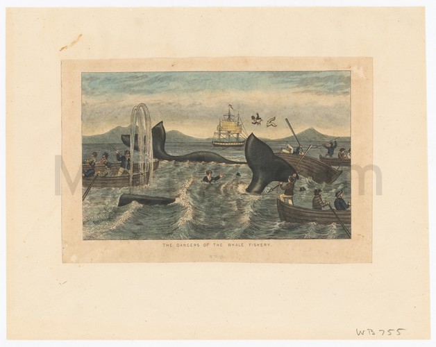 Print depicting nine Roman seals or emblems on a striped ground, with printed labels below each seal. The seals depict putti performing various actions, including travelling on the back of a dolphin. The labels below each seal are in Latin, and inform the reader of the material from which the original seal was carved (Jasper, onyx, etcetera) and in which collection or museum the original seal is located. With artist name printed in lower left margin.
