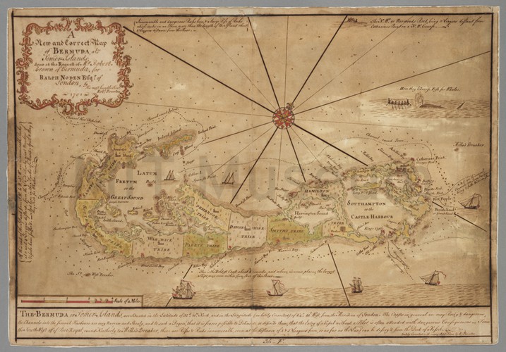 Sea monsters, ships, royal crests, and elaborate cartouches decorate the map.