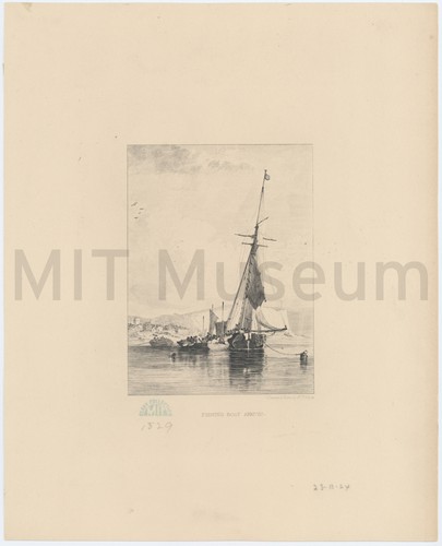 Newspaper clipping from Gleason's Pictoral Drawing-Room Companion, p. 348 of the May edition, depicting the royal barge of Queen Victoria on the Thames. It accompanied a news snippet about the Queen out on the vessel, "which was eagerly observed by crowds of admiring thousands." A bridge is visible in perspective view, and there are other vessels in the background. Stories and a poem on verso, from another article in the periodical.