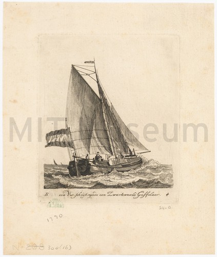 Black and white engraving of two rival whaling boats attempting to capture a whale in stormy waters. Boat in the forefront features six sailors, one of which at the front wields a harpoon and prepares to strike the whale. The boat in the back depicts a sailor who has already struck the whale in the mouth.