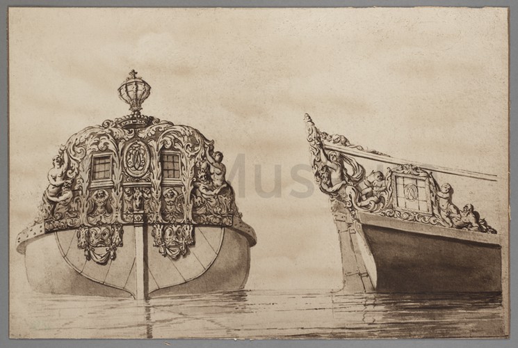A sperm whale flounders in agony as it is being harpooned by a whale boat's crewman. The movement of the whale almost tips over another whale boat and one of the crew members is about to fall into the water. In the distance on the right, the main whaling vessel is visible. In the distant on the left, a whale boat has already attached itself to the whale and is following the animal by the rope attached to the harpoon.