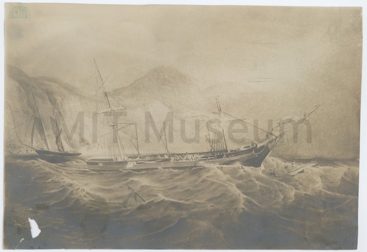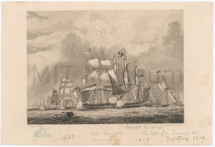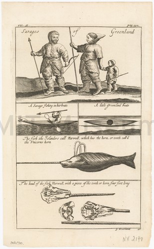 Black and white diagram engraving of species and parts of whales. Depicted are: (1) skull of a Balaenoptera Rorqual. Lettered with captions and "1. T̻te osseuse d'une Baleinoptere Rorqual. Pl. 6. Page 128."