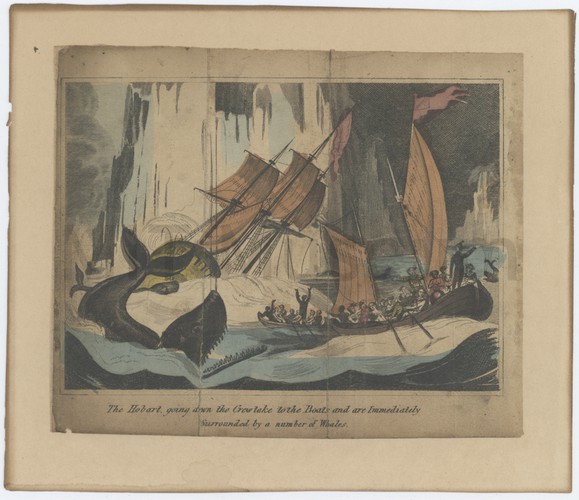 Monochrome engraving depicting three side views of whales, two of which are spouting, and details of whaling equipment including harpoons. "to:2 Tab: 2 pag. 196" is printed at right of top margin.