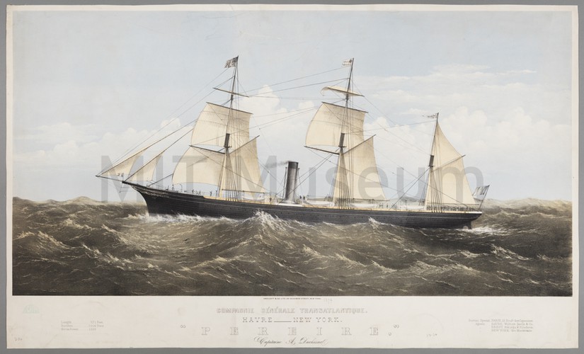 Side view ship portrait of the steamer "Messenger No. 2" on the water. Title, production information, and dimensions of the vessel printed in lower margin.