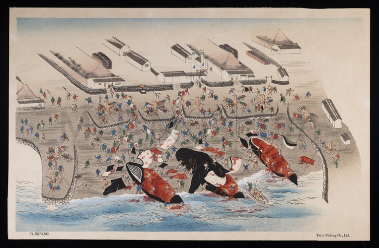 Four pages of a book in German, blackletter font, on a single sheet printed both sides and folded over. The text discusses strange animals found in far-off parts of the world such as India and Africa, and compares them to animals mentioned in the Bible. At bottom right of first page, the number "236" has been handwritten in ink, which is likely near-contemporary with the publication of the object. There is an ornamental border at top with two human figures riding stylized dolphins.