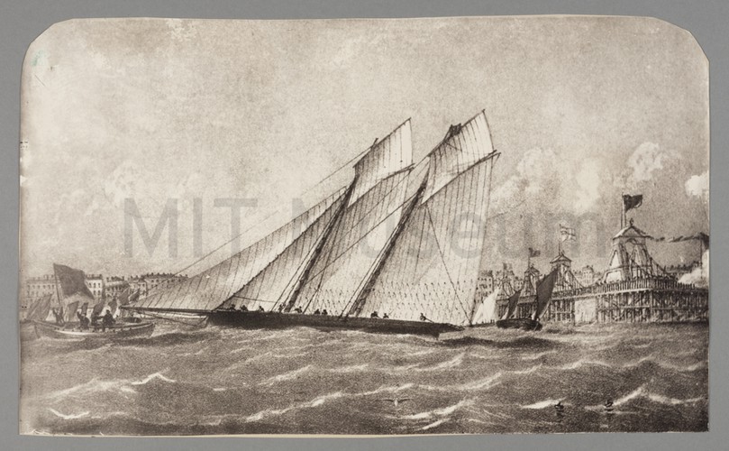 2222 / 3,080 The "America," Schooner Yacht Save Share Ask Question Forbes and Clark Collections Visualizing Maritime History Project Save Share Ask Question Ship portrait of the schooner yacht "America" surrounded by a number of sail and steam powered vessels. Classification Ship Portraits Date Made 1851-01-02 Legal Status PERMANENT COLLECTION Major Collection Hart Nautical Maker Brierly, Sir Oswald Walter; Dutton, Thomas Goldsworth; Day & Son Ltd.; Ackermann & Co. Materials ink; paper; color Measurements 15 1/2 in x 20 1/4 in Place Made Britain: London Topics Schooners LXII 164, 165 Hand-colored engraving with three scenes of seals, numbered … The Commodore Returning the Salute of the Thames Fleet Lithograph depiciting a plume of smoke rising up … A Felucca, employed for the purposes of Commerce, on the Coast of Barbary Engraving of a felucca, a small and wooden … Wildfire A photo-processed reproducted image of a ship portrait … Regnum Anglicorum Uncolored engraving depicting six medals or seals, with … Ion. Cap II.v.1 Cetus Ionae Uncolored engraving depicting a whale head, a whale … Explore chevron-right