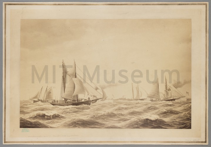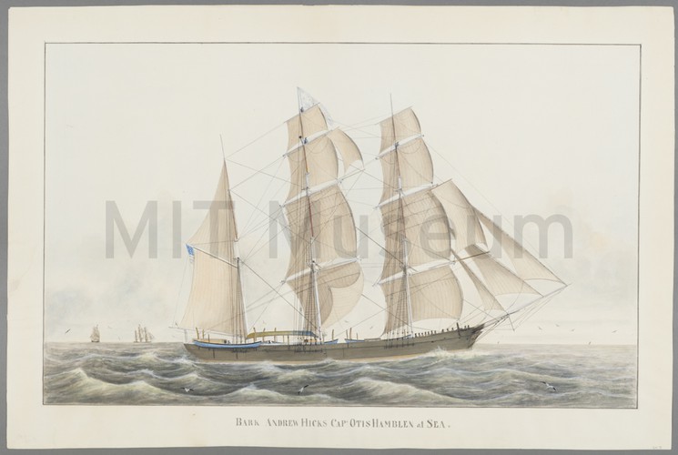 Side view ship portrait of the three-masted ocean steamer "Savannah", cut from Gleason's Pictoral Drawing-Room Companion. She flies a pennant with her name on the main mast and a US flag on the foremast. Title printed in lower margin. Portions of various fiction works printed on the verso.