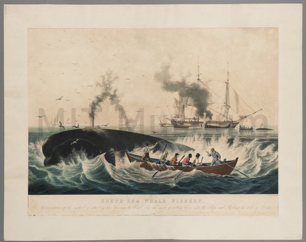 The SS 'Archimedes,' center right, leans on her port-broadside as a wave passes under her. Another unidentified steamer, bow forward, sails in the left background. The 'Archimedes' was most notable for being the world's first steamship to be driven by a screw propeller. She had considerable influence on ship development, encouraging the adoption of screw propulsion by the Royal Navy and inspiring Isambard Kingdom Brunel's SS 'Great Britain.'
