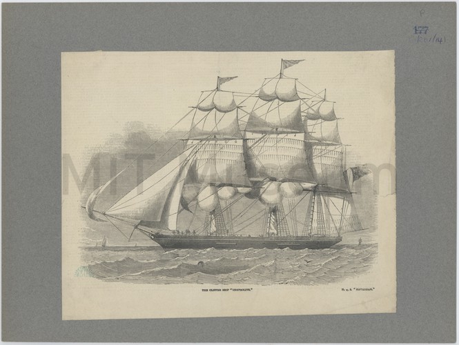 Colored engraving of a beached Beluga, or White Whale, as a polar bear looks on from a cliff. The Beluga,or White Whale, is an inhabitant of the higher latitudes, though it does not confine itself exclusively to those latitudes, being found often in milder waters.