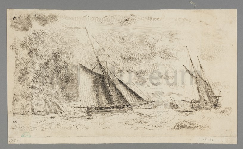The Biritsh Queen Steam Ship on her Passage from New York to London, lying to in a heavy gale. Dec. 1839