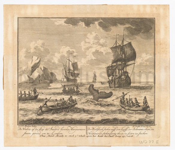 A starboard-broadside view of the cutter yacht 'Volante' in a busy harbor full of various steam and sailing craft. In the right foreground, a sailor looks at the cutter in a small dinghy. 'Volante' was a fast yacht that did very well in races. In the lower margin, along with the title and description of the yacht, are black-and-white sketches of the prizes she won in her many races.