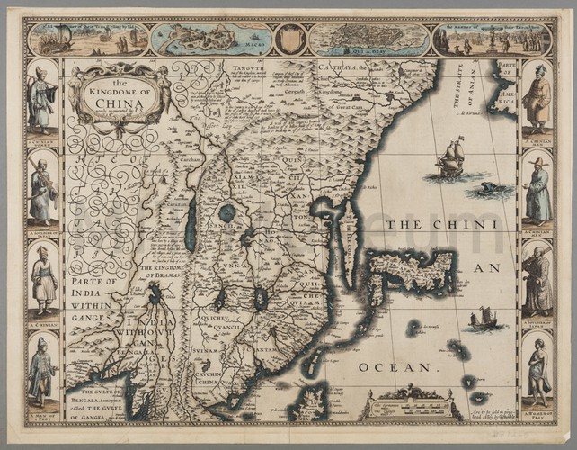Hand-colored engraving depicting a sea serpent writhing in the water with a ship and icebergs in the background. Title and artist attributions in lower margin.