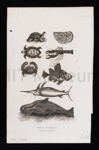 A colored lithograph of the port side of the first iron ship built in Liverpool. She is moored in a port with half of her sails furled and the other half let loose. She flies a British flag above the stern and men stand on deck. In the background is a coast with buildings and smokestacks. Built for the Pernambuco trade, she was bark-rigged and in 1839 was the only iron-sailing vessel in England.
