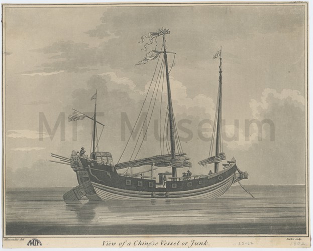 Stern and port-side view of the French 'Mars' on the left and the British 'Nottingham' on the right engaged in battle. The 'Mars' is partly dismasted with her main mast broken. The HMS 'Nottingham' is partly obscured by the gun smoke. On June 1746, the French sent a fleet to recapture Louisbourg and Nova Scotia. On the journey there, the French were hit hard by disease and were short of men. Of the many ship captured by the British, the 'Mars' was captured by the 'Nottingham' under Captain Philip de Saumarez after a two hour engagement.